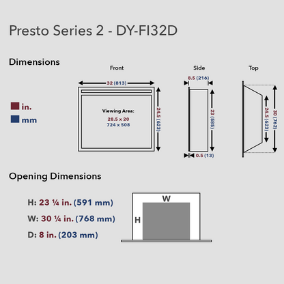 Presto 32โ โ Ideal for compact fireplaces or small feature walls.
