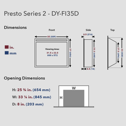 Give your fireplace a fresh facelift with the Dynasty Presto Series of electric fireplace inserts. Designed for wood or gas fireplace retrofits or new construction, the Presto Series adds cozy, energy-efficient warmth and visual appeal with minimal installation effort.