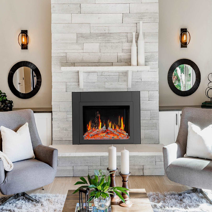LiteStar Smart Electric Fireplace Insert with Life-like Flame - Smart electric fireplace insert with realistic flame, crackling fire sounds and sparkles, natural cascade fireplace stone or river rock accessories, driftwood fireplace logs and remote control included. touch screen. wi-fi support smart home fireplace App - Idea for space heater - corner fireplace heater - replace wood burning fireplace upgrade - convert wood burning fireplace to smart electric fireplace - senior house in wall heater - home renovation smart electric fireplace heater in wall for apartment - high rise building