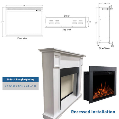 Fireplace Dimensions: 29" W x 7 7/8" D x 24" H