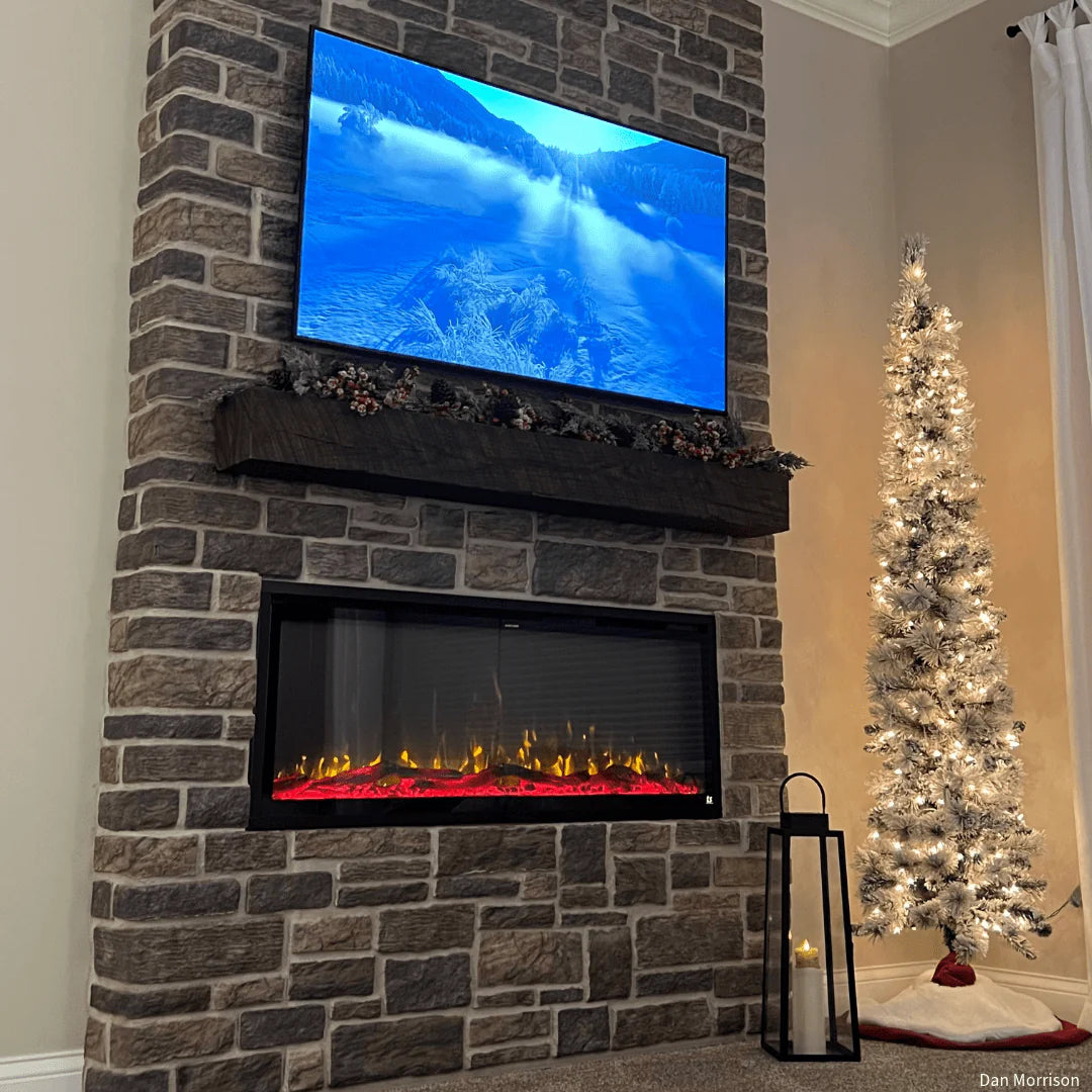50 Inches: 49.75” W x 19.25” H x 5.5” D — Features a generous 38" x 14 3/8" flame viewing area, making it the perfect fit for standard living rooms or larger bedrooms.
